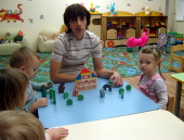 В группе №4 непосредственно организованная деятельность проходит в игровой форме, согласно календарно-тематическому планированию, которое разрабатывается вместе со старшими воспитателями. Оно включает в себя деятельность по развитию познавательной активности, игры с дидактическими и строительными материалами, коммуникацию.