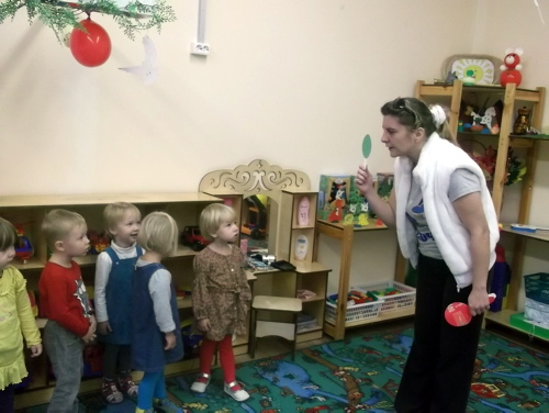 Воспитатель рассказала и показала детям значение сигналов светофора. Ребята вместе с воспитателем поиграли в игру «Красный, желтый, зелёный».