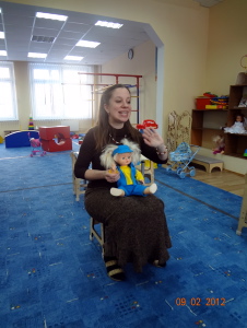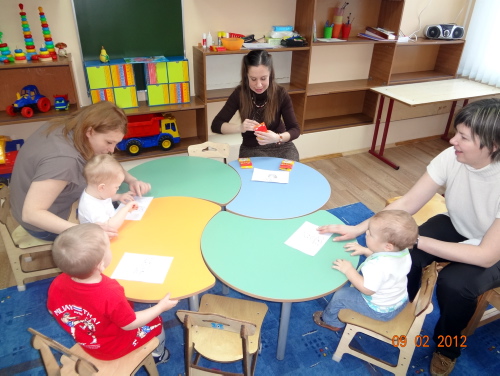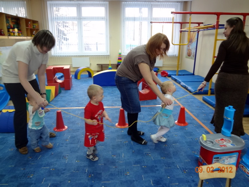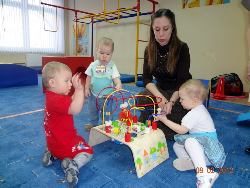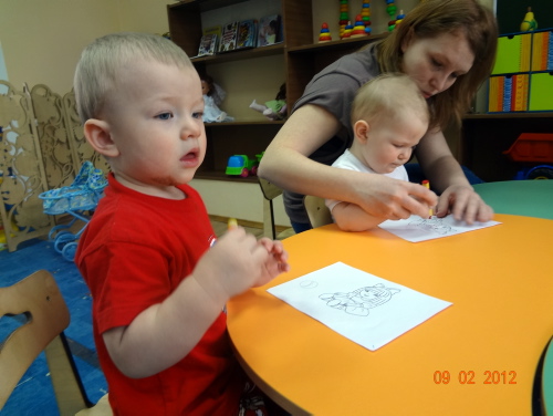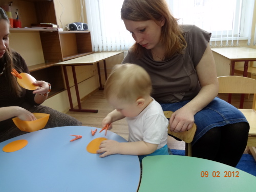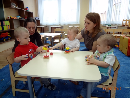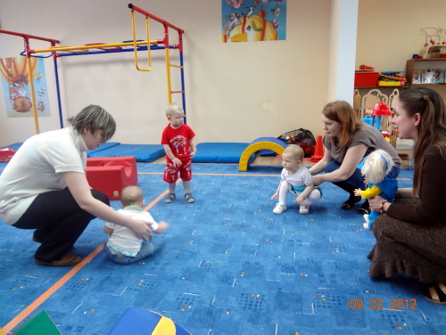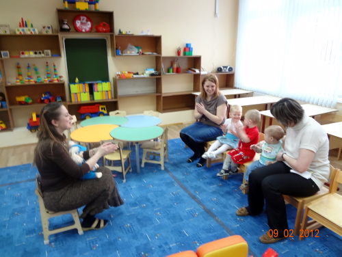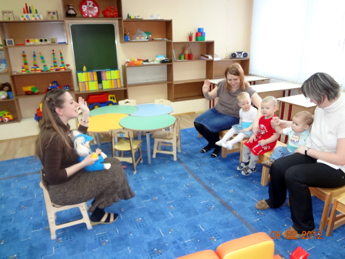 | В феврале мы с нашими малышами знакомимся с образом человека, который в игрушечном виде представлен куклой. Мы учим, где у нас глаза, ротик, носик, во что одеваются люди, как мы ухаживаем за маленькими – катаем в коляске, поем колыбельную. Наш игровой сеанс всегда начинается с приветствия, мы смотрим друг на друга и поем песенку «Здравствуйте!». ![]() Дальше мы знакомимся с персонажем, который пришел к нам на занятие, и вместе с ним весело разминаем пальчики. ![]() Потом мы, как правило, играем в подвижные игры – для наших маленьких воспитанников это очень важно: интеллектуальное развитие в этом возрасте идет рука об руку с развитием физическим. Чем больше ребенок умеет владеть своим телом, чем больше развито у него чувство координации движений, тем быстрее и легче будет он усваивать задачки на развитие мелкой моторики, а, следовательно, и речи. ![]() ![]() К примеру, мы играем в Паровозик (а значит, учимся ходить змейкой, обходя препятствия). ![]() Или играем в мяч (например, вот так) ![]() После музыкальной паузы, когда мы водим хороводы и учимся слушать песенки, наши малыши знакомятся с новыми развивающими игрушками. ![]() Дальше мы или рисуем, или лепим, или занимаемся аппликацией – и это тоже ещё игра, мы только знакомим ребенка с миром художественной деятельности, включая его в игру с персонажем, который пришел на занятие посмотреть на ребят. ![]() ![]() После 5-минутки свободной игры ребенка мы играем с дидактическим материалом (например, собираем пирамидку или, по методу М.Монтессори, работаем с разноцветными прищепками). ![]() ![]() В конце нашего игрового сеанса мы дружно поем песенку «До свидания» и машем нашей куколке рукой. ![]() | |