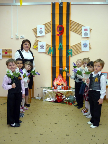 | 8 мая в группах №9 и №10 прошло открытое тематическое мероприятие – музыкальный досуг, посвященный Дню Победы 9 мая. Досуг подготовили и провели музыкальный руководитель Голубятникова Е.Н. и воспитатель группы Капачева М.Н. ![]() Цель мероприятия: продолжать знакомить детей с историей нашей Родины, воспитывать патриотические чувства, прививать чувство уважения к ветеранам войны, к их подвигам и мужеству. В импровизированном музее дети увидели настоящие ордена и медали Великой Отечественной войны, которые принесла Елена Николаевна, а также разные солдатские принадлежности. ![]() ![]() Елена Николаевна рассказала ребятам о создании песни «Священная война». Дети, замерев, слушали эту песню и смотрели слайды с изображением фотографий времен войны. ![]() Потом все вместе – и дети, и гости исполнили песню «Катюша». ![]() ![]() Ребята с интересом слушали рассказ Марианны Николаевны о том, как празднуют День Победы в нашей стране и как чтут память о погибших героях. Дети исполнили танец с цветами, песни «Парад Победы» и «Солнечный круг». ![]() Настроение у всех было праздничное, радостное. Мы пожелали друг другу мирного неба над головой и счастливого будущего. | |