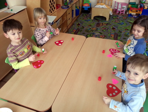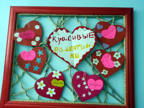 Сегодня мы делали из картона и цветной бумаги Валентинки, украшали их.![]() Потом мы устроили с Татьяной Валерьевной выставку с работами для любимых мам, пап, и дедушек. ![]() | |