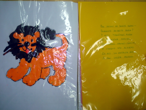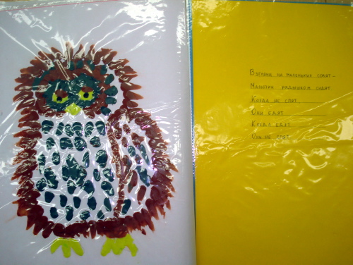![]() Ребята из группы №7 самостоятельно вместе с воспитателями выполнили иллюстрации к книге С.Я. Маршака Детки в клетке. ![]() ![]() ![]() ![]() Иллюстрации выполнены в технике аппликации, пальчикового рисунка, пластилино-графики ![]() ![]() Получилась настоящая книга, которую ребята с удовольствием рассматривают. ![]() ![]() ![]() ![]() | |