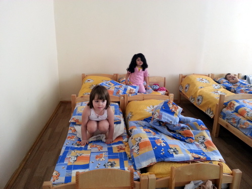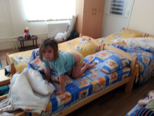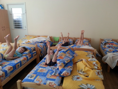 Сегодня мы занимались гимнастикой в кроватях для пробуждения. Татьяна Валерьевна показывала упражнения.