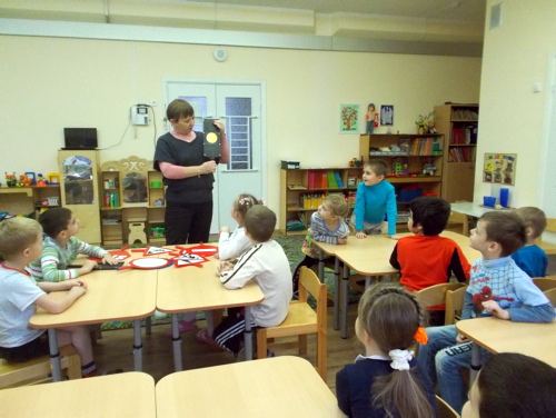 19 ноября в подготовительной группе прошло занятие «Красный, желтый, зеленый», по правилам дорожного движения. Дети слушали сказку про «Воробья Тишку». Узнали, что бывают подземные, наземные и надземные переходы. А так же узнали, что обозначают дорожные знаки.