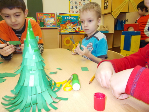 Скоро наступит новый год, взрослые и дети готовятся к празднику. Дети 11 группы рисуют Деда Мороза, который непременно придет на наш утренник. Даже елку сконструировали из бумаги. У всех детей предпраздничное настроение. |