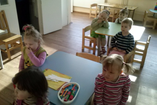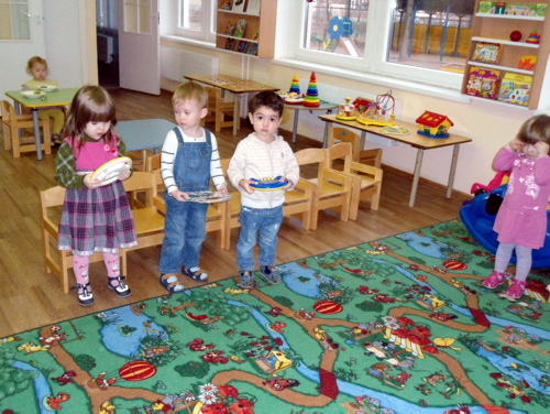 Воспитатель рассказала и показала детям значение сигналов светофора. Ребята вместе с воспитателем поиграли в игру «Красный, желтый, зелёный».
