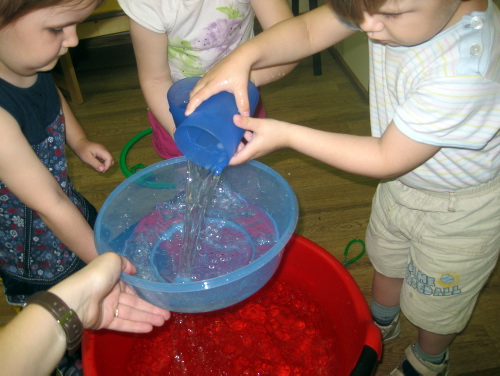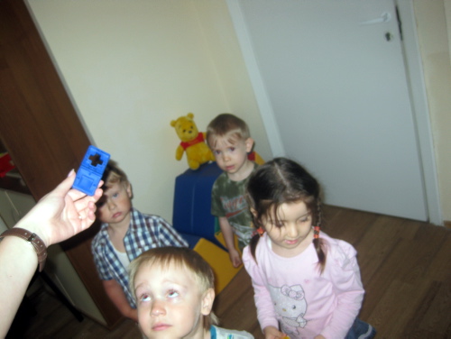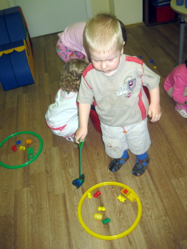 ![]() ![]() Вот как проходили игры с водой. Сначала всех детей встречал веселый мишка, дети с ним здоровались и называли свои имена.![]() Потом психолог показывал элементы разноцветного домино, и затем дети должны были назвать цвет. Когда ребенок правильно угадывал цвет, то он брал домино и вставал в круг, соответствующий своему цвету. ![]() ![]() Когда все дети вставали по цветовым кругам, психолог их спрашивал, что находится в тазике. ![]() После ответов детей, педагог раздавал каждому ребенку «чудо-удочки» для ловли потерявшихся «улеев с медом» Винни-пуха. ![]() ![]() Потом все дети весело играли в игру «Поймай своего мишку!». Каждый ребенок должен был спасти мишку своего цвета. ![]() ![]() ![]() После спасения мишек, дети совместно с психологом вспоминали еще раз цвета и хлопали друг другу. ![]() Все спасенные мишки отправились к себе в дом. ![]() К сожалению, солнышко на несколько секунд скрылось, и вышла тучка, которая принесла дождик. ![]() Психолог предложил сделать свой дождик. Дети сами зачерпывали воду и переливали в сито. ![]() ![]() ![]() В конце сеанса все дети прощались с мишкой и пересказывали, что они делали. ![]() Некоторые дети приходили в гости к мишке по 2-3 раза. ![]() | |
