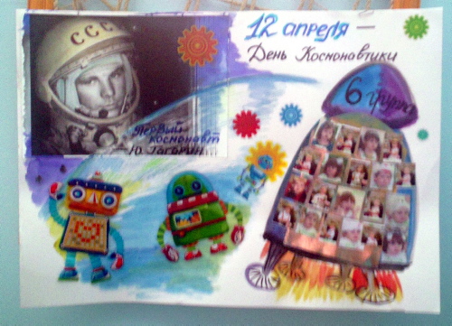 12 апреля – День космонавтики. Мы говорили с ребятами о небе, космосе, ракетах и, конечно, о Юрии Гагарине. ![]() ![]() К 12 апреля мы с ребятами сделали не только поделки, но нарисовали плакат. ![]() ![]() | |