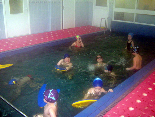 Ребята хотят вырасти крепкими и здоровыми, поэтому с большим удовольствием, посещают бассейн. Тренер учит их плавать и многие уже добились успеха!![]() | |