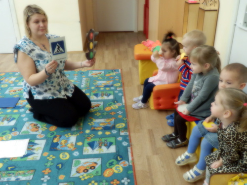 В группе кратковременного пребывания прошел досуг посвященный правилам дорожного движения.![]() Воспитатель предлагает поиграть воспитанникам в игру «Перейди дорогу». ![]() В конце занятия дети познакомились со светофором и с основными знаками правил дорожного движения. ![]() | |