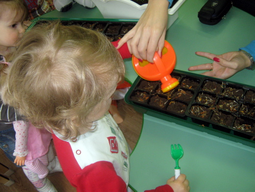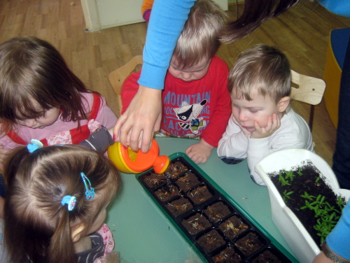 ![]() Сегодня наши малыши помогали сажать семена цветов для наших весенних клумб. ![]() Ребята рассмотрели ростки цветов, которые уже взошли. Затем дети вместе с воспитателем Соболевой Людмилой Андреевной и педагогом-психологом Удаловой Ольгой Владимировной делали лунки в земле, сажали в них семена и поливали их из лейки. ![]() ![]() ![]() Теперь дети будут с интересом наблюдать за тем, как всходят посаженные ими семена и превращаются в красивые цветы. | |