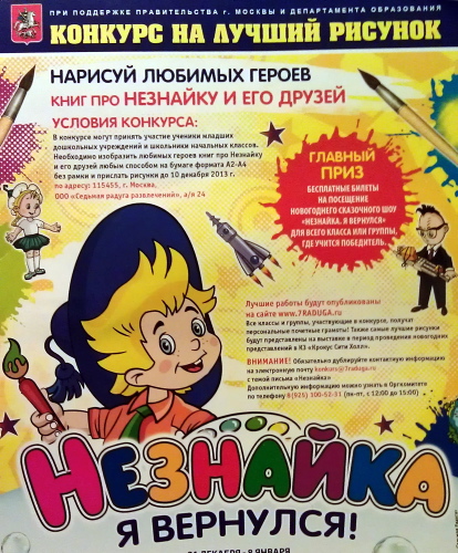 10 декабря 2013 года наш детский сад примет участие в конкурсе детского рисунка «Незнайка и его друзья»