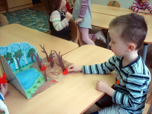 | Во второй младшей группе №7 сегодня прошла беседа на тему «Огонь – друг, огонь – враг». Беседа с детьми началась о пользе огня в жизни человека. Ребята с интересом слушали рассказы воспитателя о том, как древние люди добывали огонь, и о том, что сейчас невозможно жить без огня. Затем воспитатель познакомила детей с тем, что происходит, если неосторожно обращаться с огнем. Ребята приняли активное участие в беседе. После беседы мы с детьми сделали коллективную работу «Огонь – друг, огонь – враг». ![]() ![]() ![]() ![]() | |