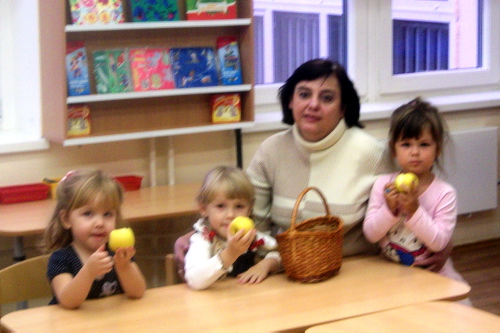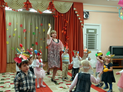 24 октября в Музыкальном зале Детского сада № 399 прошел осенний музыкальный праздник «Осенние топотушки – в гостях у Петрушки». Ребята выступали для гостей – пап, мам, бабушек и дедушек – пели, плясали. Выступали они не одни: в этот раз им на помощь пришли друзья: Петрушка, Медвежонок-сладкоежка и Зайчик –трусишка.![]() Юные артисты очень волновались. ![]() «Здравствуйте, ладошки, хлоп-хлоп-хлоп! Здравствуйте, ножки, топ-топ-топ!....»: так мы приветствовали наших гостей. ![]() ![]() Ну какая осень без листопада, Ну какой праздник осени без танцев с осенними листьями. ![]() ![]() Покачайся надо мной мой листочку золотой Листики дубовые, листики кленовые! ![]() Мы за листиком сидим, из-за листика глядим. Листики дубовые, листики кленовые! ![]() Вдруг Веселый ветерок хочет вырвать мой листок! Листики дубовые, листики кленовые! Мы листочек не дадим, пригодится нам самим! Листики дубовые, листики кленовые! ![]() А потом в нашем исполнении звучала песенка «Кап-кап – на дорожки» или «Осень наступила». ![]() Петрушка и Мишка помогали нам и петь и танцевать. ![]() ![]() Вот так мы играли, пели, а тут закапал дождик, самый настоящий. ![]() ![]() ![]() Перед тем, как попрощаться с гостями, Петрушкой и мишкой мы станцевали и спели им про Погремушку. ![]() ![]() Ниши песенки и танцы так понравились Петрушке и Мишке, что он подарил нам целую корзину яблок. ![]() ![]() Попрощавшись с родителями, мы пошли есть яблочки в группу. ![]() ![]() | |