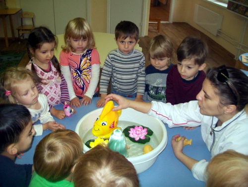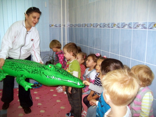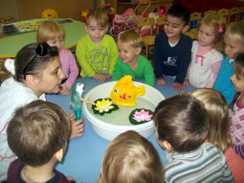 | Сегодня в младших группах нашего детского сада проходили досуги на тему: «Знакомство с водой». В гости к малышам приходили сказочные персонажи - Русалочка и Золотая рыбка. ![]() Сказочные персонажи познакомили детей с водой и её свойствами. ![]() ![]() Играли в интересные игры «Водный футбол», «Достань со дна», «Раноцветные мячики». ![]() ![]() ![]() Так же малыши побывали в бассейне. ![]() Познакомились с обитателями бассейна. ![]() ![]() Нашли сокровища. ![]() Дети получили незабываемые впечатления, массу позитивного настроения и обещали, что обязательно придут в бассейн и научатся плавать. ![]() | |