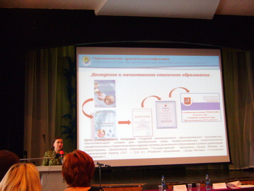 | 13 февраля 2013 года в рамках Федеральной инновационной площадки состоялась окружная научно – практическая конференция «Образование 21 века. Вызовы времени и столичное образование в эпоху перемен». Конференцию посетили сотрудники нашего детского сада старший воспитатель Севостьянова М.М. и педагог-психолог Удалова О.В. Место проведения: ГБОУ ЦО №1679 СОУО ДО г. Москвы Большое пленарное заседание Выступали на заседании: - доктор педагогических наук, заслуженный учитель РФ, лауреат премии Президента РФ, лауреат премии Москвы в области «Образование», директор ГБОУ ЦО №1679,Просвиркин Владимир Николаевич «Преемственность в условиях модернизации столичного образования как ответ на вызовы времени» ![]() «Выпускник детского сада – успешный первоклассник. Преемственность ФГТ и ФГОС (из опыта работы стажировочной площадки)» - заведующая ГБОУ ЦРР №2528, к.п.н., Садовникова Жанна Витальевна. ![]() «Достижение метапредметного результата средствами мыследеятельностной педагогики в начальной ступени образования (из опыта работы Ресурсного центра «Мыследеятельностная педагогика. Эпистемотека»)» Почетный работник общего образования РФ, лауреат «Грант Москвы», заместитель директора по инновационной деятельности ГБОУ СОШ №597, Заманова Евгения Владимировна. ![]() «Развитие индивидуальной мыслительной деятельности каждого школьника как субъекта учебного процесса для реализации требований ФГОС нового поколения в средней ступени образования» доцент кафедры теории и технологии обучения Первого МГМУ им.И.М. Сеченова, доцент Учебного центра по переподготовке работников сферы образования МГУ им. М.В. Ломоносова, к.п.н., Коломиец Ольга Михайловна. ![]() « Формирование российской идентичности у старшеклассников » заведующий лабораторией НИИСРО, Андрюшков Андрей Александрович. ![]() « Развитие инфраструктуры технологической поддержки образования в городе Москве» - доктор технических наук, профессор, креативный директор Центра технической поддержки образования (ЦТПО) при РГГУ, Пряничников Валентин Евгеньевич. ![]() « Введение Федерального государственного образовательного стандарта (ФГОС) - стратегическое направление деятельности столичного образования » профессор кафедры теории и методики профессионального образования МГПУ, заслуженный учитель РФ, к.п.н., Новичков Владимир Борисович. ![]() Федеральная инновационная площадка «Реализация преемственности в системе непрерывного образования как средство обеспечения ФГТ и ФГОС в условиях нового финансового обеспечения» – ресурс развития педагогических кадров в эпоху перемен» - заместитель директора по инновационной деятельности ГБОУ ЦО № 1679, кандидат психологических наук, Емельянова Екатерина Викторовна ![]() Открытый микрофон: Выступления участников конференции. ![]() На сайте преемственность нашими педагогами будут решены проблемы резолюции по итогам окружной научно-практической конференции. | |