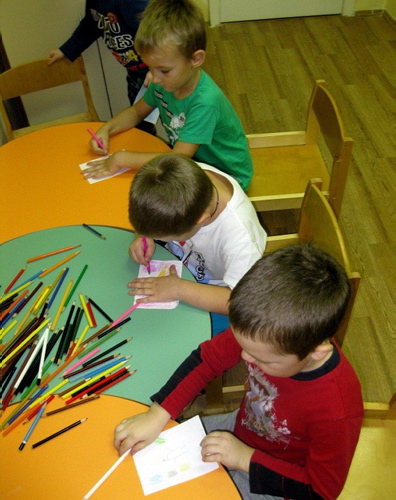 Вот как проходил первый сеанс в подготовительной группе № 12 Для установления контакта с участниками психолог предложил игру «Именной круг», ![]() в которой дети передавали мяч соседу слева и два раза называли свое имя. После установления контакта была проведено «разогревающее» упражнение «Пчелы» с целью развития координации и быстроты движений. В этой игре дети превратились в «пчел», ![]() ![]() а психолог в роли «пчелиного часового». С целью развития концентрации внимания и творческого мышления дети отгадывали приготовленные заранее психологом загадки и «задачи – шутки». Затем психолог предложил детям игру «Воздух – земля – огонь – вода». ![]() По окончании игры все аплодировали самому внимательному участнику. После такой активной игры дети успокаивались, делясь своими яркими впечатлениями. Затем психолог предложил всем заполнить самостоятельно карточки к упражнению «Помоги судье» (найти пропущенные номера и соединить номера зайцев, которые встречались дважды). Для того, чтобы дети лучше осознали будущую свою социальную роль – роль «ученика», психолог рассказал им о «Школе для животных». У каждого животного была своя характеристика (представлены разные мотивы обучения). Например, после того, как дети узнавали, зачем в школу хочет ходить лошадку, они поднимали руку (т.е. те кто хотел быть на нее похожим). Тому, кто поднимал руку, выдавалась синяя фишка, о кому понравился медвежонок - коричневая и т.д. Дети не только слушали рассказы про животных, но и видели их на мониторе. ![]() В конце у каждого ребенка в руках оказалось несколько фишек. Психолог напомнил всем детям о принадлежности каждого из символов. ![]() И предложил детям выбрать нужные карандаши и раскрасить листы бумаги (упражнение «Разноцветный лист»). ![]() По результатам двух последних упражнений психолог делает предложение о принадлежности детей к одному из 5 типов учеников: исполнительский, интеллектуальный, коммуникативный, игровой, тревожный. В конце дети вспомнили все игры и упражнения, которые они выполнили. | |