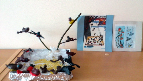 22 февраля ребята группы №9 совместно с воспитателем группы Кулаковой Т.А. изготовили интересную поделку «Птички клюют зернышки». Мы слепили зимующих у нас птичек, предварительно повторив названия птиц.![]() Затем посадили птичек в кормушку и насыпали им пшена. Также мы поговорили на тему «Чем еще можно покормить голодающих птиц?» ![]() ![]() Эта работа направлена на воспитание в детях сострадания к голодающим птицам, отзывчивости, ответственности, учит их работать вместе, делать общее доброе дело. ![]() | |