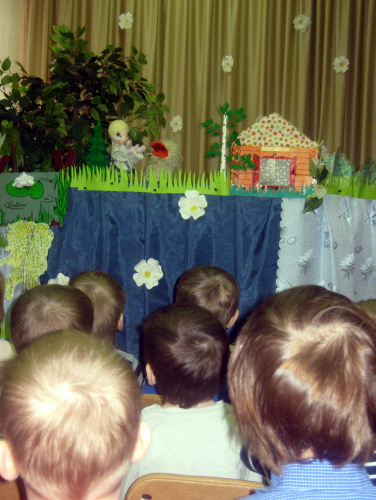 20 марта в детском саду был показан кукольный спектакль "Как Алёнка спасла гусёнка". Роли исполнили сотрудники нашего детского сада. В процессе действия дети-зрители принимали участие. В результате чего все получили большое удовольствие.