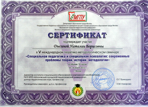 ![]() Учитель – логопед Дысина Н.Б. стала участницей V Международного теоретико-методологического семинара «Специальная педагогика и специальная психология: современные проблемы теории, истории, методологии», проходившего 8—9 апреля 2013 года в Московском городском педагогическом университете. ![]() Семинар был посвящён обсуждению современных научно-теоретических и методологических оснований специальной педагогики и специальной психологии, новых исторических исследований развития специального образования, специальной педагогики, специальной психологии в России и за рубежом, рассматривались полифундаментальный и междисциплинарный подходы в современных исследованиях в этой области, новые методологические подходы при изучении феноменов специального образования. ![]() | |