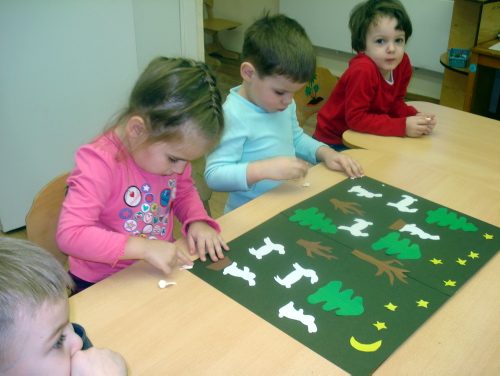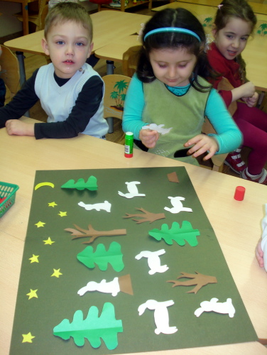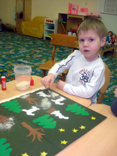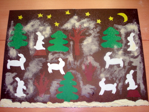 Сегодня мы с ребятами сделали коллективную работу «Зайцы в лесу»![]() ![]() Дети приклеивали вырезанные из цветной бумаги зайчиков, деревья, ёлочки, пенёчки. ![]() Затем из пластилина сделали снежную дорогу и заячьи следы. ![]() И потом с помощью манной крупы мы с ребятами сделали пушистый снег. ![]() ![]() Чьи-то лапки на белом снегу наследили, Кто-то, робкий, лесною опушкой бежал, У березы кору обглодал. Корешок чьи-то зубки точили. Белым столбиком долго сидел, Навострив свои длинные ушки, И, зачуяв стрелка, полетел Через голову с белой горушки. Куцый хвостик, глаза с косиной И пушистая белая шубка, Рост не мал и не очень большой, И раздвоена верхняя губка. | |